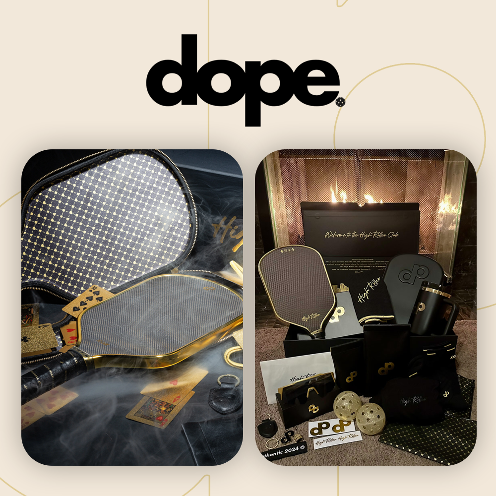 Dope Pickleball is a premium-lifestyle pickleball brand that fuses high-performance gear with bold design and culture-forward style. They’re known for collections like their “High Roller” line, featuring gold-chrome edged paddles and glitter-infused pickleballs, signaling that their products are as much about aesthetics and lifestyle as they are about function.