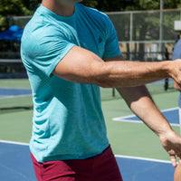 A performance top that feels like wearing a cloud. This performance pickleball shirt feels like you are amongst the clouds. PRODUCT FEATURES Unisex, short sleeve shirt Relaxed cut with a soft, light texture Moisture wicking 89% Poly, 11% Elastane Good Get brand on the left pocket _________________ Introducing the AeroBliss Performance Short Sleeve Shirt from Good Get – your ultimate performance shirt on the pickleball court. Engineered to encapsulate the essence of comfort and performance, this shirt is a dream come true for pickleball enthusiasts of all levels. Crafted from a divine blend of 89% polyester and 11% elastane, the AeroBliss is not just a piece of apparel; it's an experience. Available in short-sleeve in serene Teal and the deep, reassuring hues of Navy Blue, it’s designed to cater to both the aesthetic and the practical needs of pickleball players. With its unisex design and relaxed cut, the AeroBliss offers freedom of movement and a soft, light texture that might just make you wonder if it's woven from clouds themselves. Whether you're dishing out powerful serves or diving for that impossible save, this short sleeve marvel promises to keep you cool, comfortable, and unrestrictively mobile. Join the legion of players who’ve chosen to elevate their game while embracing the core values of community, unignorability, fun, and quality that Good Get stands for. The AeroBliss Performance Short Sleeve Shirt isn't just about playing pickleball; it's about feeling supremely blissful while you do.