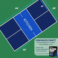 Alpha Grip is an eco-friendly, waterborne, highly durable non-slip paint that can be used on concrete, asphalt, prepped wood, and more. This non-toxic, anti-slip coating can be used for painting walkways and asphalt or concrete courts for sports, making it the preferred choice or active sports with pickleball and basketball. This water-based acrylic paint is perfect for striping asphalt parking lots, enhancing playgrounds, improving athletic courts, and for virtually any setting requiring additional traction on pavement. It's easy to apply and dries quick. This coating is widely used to improve both the safety and functionality of pickleball and basketball courts. It serves a dual purpose: providing protection and creating an anti-slip surface, as well as accurately painting the pickleball lines on concrete, essential for gameplay. Moreover, its durability ensures it withstands heavy foot traffic and harsh weather conditions without fading or wearing away quickly. This keeps courts and safety areas colorful and harmless for a long time, making it an economical option for private, business and public use. Not sure which colors to choose for your court? Explore our court template gallery for inspiration and measurements! Alpha Grip can be applied quickly and easily with a roller. It's typically dry to the touch within 1 hours and fully cured in 24 hours. For athletic court outdoor concrete surfaces we require Hydro Prime to ensure best adhesion and to prevent moisture issues. Coefficient of Friction 0.77 Wet DCOF - ANSI A137.1 / A326.3 0.71 Wet DCOF - NFSI B101.3 0.80 Wet SCOF - NFSI B101.1