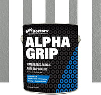 Alpha Grip is an eco-friendly, waterborne, highly durable non-slip paint that can be used on concrete, asphalt, prepped wood, and more.