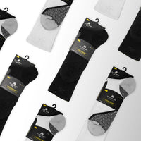 AMP Wear Socks feature high-quality combed cotton and reinforced zones that deliver precise compression and cushioning for stability and superior comfort. The moisture-wicking fibers keep feet dry and blister-free all day. You were built to run. Our socks were built to keep you running. (Compression level 18-25mmHg)