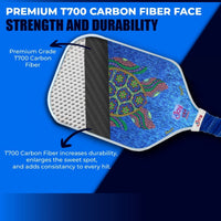 High-Performance Carbon Fiber Pickleball Paddle + Protective Cover The Ultimate Pickleball Paddle: T700 Carbon Fiber Precision Elevate your game with a pro-engineered pickleball paddle built for power, control, and consistency. Crafted with advanced T700 carbon fiber and a responsive 14mm honeycomb core, this paddle delivers explosive pop, stable touch, and reliable spin—ideal for quick hands at the kitchen and confident drives from the baseline. Key Features: T700 Carbon Fiber Construction: Lightweight, strong, and durable for competitive play. Enjoy fast swing speed, enhanced control, and long-lasting performance. 14mm Honeycomb Responsive Core: The sweet blend of power and feel for crisp dinks, penetrating volleys, and quick returns. Optimized Wider Face: At 7.75 inches, the face balances forgiveness and maneuverability for consistent shot-making without sacrificing hand speed. Longer Handle for Two-Handed Shots: A 5.23-inch handle offers better leverage, stability, and comfort for two-handed backhands and aggressive counters. Eye-Catching Graphics: Stand out with vibrant, stylish designs that bring personality to every point. Top-Level Performance: Engineered feel and touch to help you place the ball with precision, control pace, and win the soft game. Dimensions: 7.75" wide, 16.2" long, handle length 5.23". Why Players Love It Durability You Can Trust: Premium materials built to go the distance without compromising performance. Great for All Skill Levels: From new players to seasoned competitors, this paddle boosts confidence and consistency on court. Protective Cover Included Safeguard your gear with a premium neoprene cover featuring a smooth zipper enclosure for easy on/off. Durable, travel-ready protection keeps your paddle safe between matches. Unlock your full potential with a carbon fiber pickleball paddle that blends control, power, and precision—plus a protective cover to keep it game-ready. Step onto the court with confidence and play your best every time.
