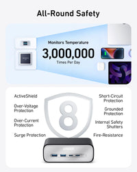 - Safety Beyond Standards: Trust in Anker's proprietary ActiveShield safety system to keep your devices safe, rigorously monitoring temperature 3,000,000 times daily.