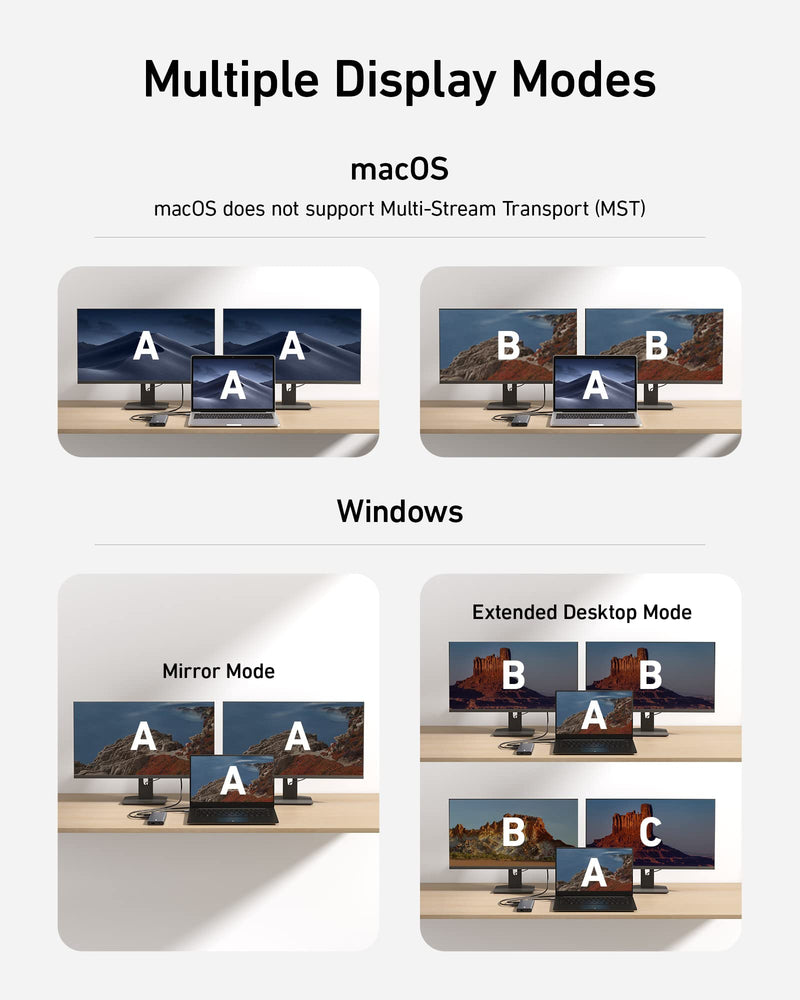 - Multi-Monitor Display: Connect to the DisplayPort and HDMI port to enjoy crystal-clear streaming or mirroring across 2 displays at up to 2K@60Hz with a DP 1.4 laptop or 1080p@60Hz with a DP 1.2 laptop.