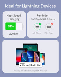 - Certified Safe: MFi certified to work flawlessly with all of your Lightning devices, including iPhone 13/12 and iPad. Safely charge your device at its highest possible speed when connected to a Power Delivery high-speed charger.