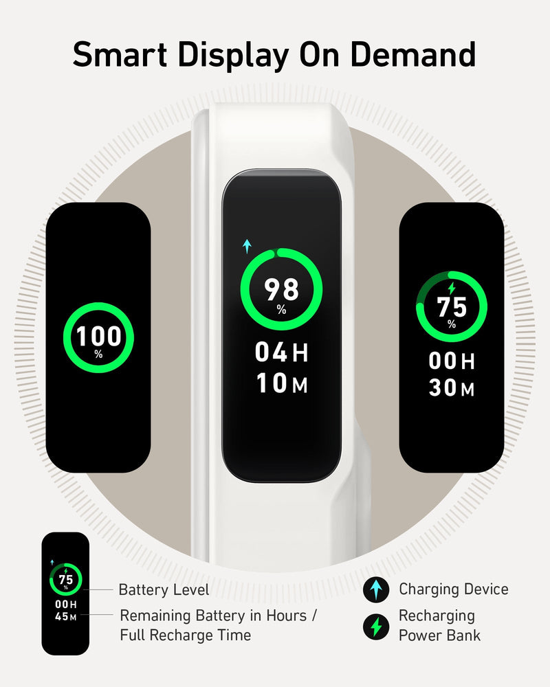 - Informative Smart Display: Keep tabs on your device's charging journey. From battery percentages to full recharge times, the intuitive smart screen ensures you're always updated.
