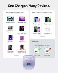 - Nano Now Charges Everything: Upgraded with a 30W output so now you can charge your earbuds, phone, tablet, and even your MacBook Air with a tiny charger.