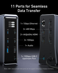 - Master Your Data Flow with 11 Ports: Efficiently manage data across multiple devices with versatile ports offering speeds up to 10Gbps, complemented by dual 4K display and audio options.
