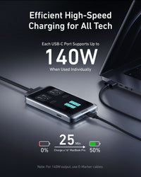 - 140W Max Per USB-C Port: Leverage the 140W output available on each USB-C port to rapidly charge your high-demand devices such as a 16-inch MacBook Pro, efficiently reaching 53% in just 30 minutes.