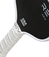 Aria Paddle: Power, Control, and Comfort for Every Player The Aria Paddle by REV Pickleball is perfect for players ready to take their game to the next level, whether you're just starting out or looking to compete in tournaments. Key Features and Why They Matter: Precision Design: Made with T700 carbon fiber, one of the strongest and most reliable materials in pickleball. It helps deliver consistent shots every time. Big Sweet Spot: The 16mm thick honeycomb core gives you extra control and a forgiving "sweet spot," making it easier to return the ball, even if you don’t hit it perfectly. Reach and Power: The elongated paddle shape and 5.5" handle give you more reach to hit those tough shots while maintaining power and stability. Comfort Grip: A premium, comfortable grip with added texture ensures a firm hold, helping you play longer with less hand fatigue. Tournament Ready: Approved by USA Pickleball, this paddle is ready for any level of play, from recreational games to professional tournaments How is the Aria different from the Aria Pro? The Aria Pro is specifically designed for professional-level players who need maximum performance. It has upgraded materials and features like enhanced weight balancing, which may not be as important for newer players. The Aria paddle, however, provides many of the same benefits but is more accessible for beginners and intermediate players looking to grow their skills. Why Choose the Aria Paddle? This paddle combines top-tier materials and design, comparable to high-end professional paddles, at a fraction of the price. Whether you're new to pickleball or aiming for pro-level performance, the Aria Paddle delivers power, precision, and comfort in one sleek package. Specifications: Size: 16.5" x 7.5" Weight: Approx. 8.0 oz Handle Length: 5.5" Grip Circumference: 4.35"