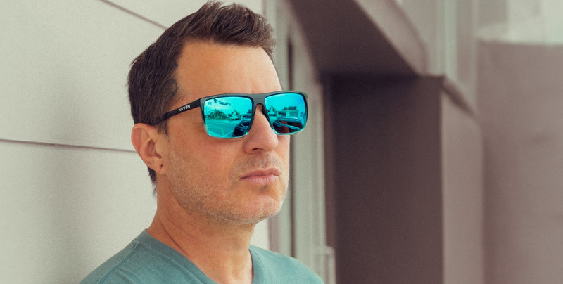 The infamous Doc Robbins was born and raised under the 115° sun of Tucson - which is often described as "America's largest small town" or "the last place to use the bathroom on your way to hell." He tells tall tales of year-round sunburns, contact burns from automobiles and pavement, swamp coolers that never work in *August*, the kaleidoscope of colors at sunset, being able to see the Milky Way in nighttime sky, walking through the desert to get to school and having a pet jackalope. "I didn't hear of spring break until I got to college, they called it 'rodeo days.'"- Doc Robbins FEATURES INCLUDE Frame size: Large Finish: Gloss Frame color: Black/Blue Lens color: Blue Interior lens tint: Brown/Amber Light Transmission: 8.70% Stainless steel 5-barrel hinges Upgraded TR90 frames Polarized UV400 protection Premium oleophobic coating Anti-saltwater FDA approved, impact-resistant lens Protective pouch included