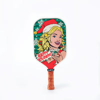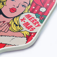 Unwrap some holiday flirtation with the Kristen & Kristy "Merry X-Mas" paddle! This retro-inspired beauty features a glamorous Santa blonde blowing a kiss, adding a playful twist to your holiday game. With bold Christmas reds, festive polka dots, and a touch of sass, this paddle is perfect for players who bring both style and spirit to the court. Serve up some holiday magic, make your matches a little merry (and maybe a little naughty), and let the "Merry X-Mas" paddle be your festive favorite!