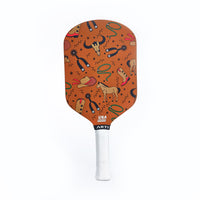 Introducing the "TEXAS" paddle from our State Collection! USAPA-approved and featuring a bold Burnt Orange design, this high-performance paddle is crafted with T700 carbon fiber for superior durability and control. Represent Texas in style while dominating the court! PADDLE SPECS: USAPA Approved Weight Range: 7.8-8.0 oz Length: 16.4“ Width: 7.5” Thickness: 16mm Handle Length: 5.5" Face: 100% T700 Carbon Fiber Core: Honeycomb Polymer Core WHY YOU'LL FALL IN LOVE? USAPA Approved TEXAS PRIDE Top-of-the-line design and quality Lightweight yet powerful Optimized for spin and control Design Story Yeehaw! The "TEXAS" paddle is here to bring Lone Star swagger to the court. With bold Burnt Orange and iconic Texas symbols – cowboy hats, longhorns, and horses – this paddle is all about playing big and proud. Serve up Texas pride with every swing and make your mark!