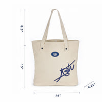 ARTI Signature Cotton Tote Bag – Cream Carry style and sustainability with the ARTI Signature Cotton Tote Bag in timeless cream, crafted from 100% premium cotton for durability and eco-conscious appeal. Measuring 15" H x 14" W x 6.25" D with sturdy handles (8.5" drop), this versatile tote is perfect for everyday use, from grocery runs to beach days. Featuring the iconic ARTI signature in bold navy embroidery and our signature crown emblem, this bag blends classic design with a touch of playful sophistication. Lightweight yet spacious, it’s the ideal companion for on-the-go lifestyles—pair it with your ARTI paddle set for a cohesive look. Machine washable for easy care, this cream tote embodies ARTI’s commitment to quality, creativity, and sustainability. Key Features: Material: 100% cotton for a supple, sturdy, and eco-friendly feel. Color: Elegant cream with navy embroidery and accents. Dimensions: 15" H x 14" W x 6.25" D, with 8.5" handle drop for comfortable carrying. Design: Signature ARTI navy embroidery and crown emblem for a chic, branded look. Care: Machine washable for effortless maintenance. Elevate your essentials with a tote that’s as functional as it is fashionable—shop now and embrace the ARTI lifestyle!