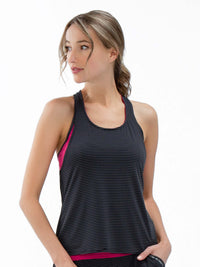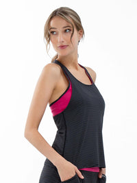 Aubrey Double Layer Athleisure Tank - Fuchsia/Black