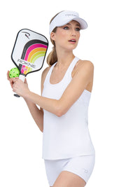 An elegant version of the racerback tank. This Layered Tank Top is made from two layers of soft nylon fabrics to keep you cool. with smooth coverage. The tiered hemline gives a modern, layered look. Classic FitLow Impact Double layer racer backSoft nylon fabrics to keep you coolUPF 50+82% NYLON, 6% POLY, 12% SPANDEX ;Easy careMachine washable
