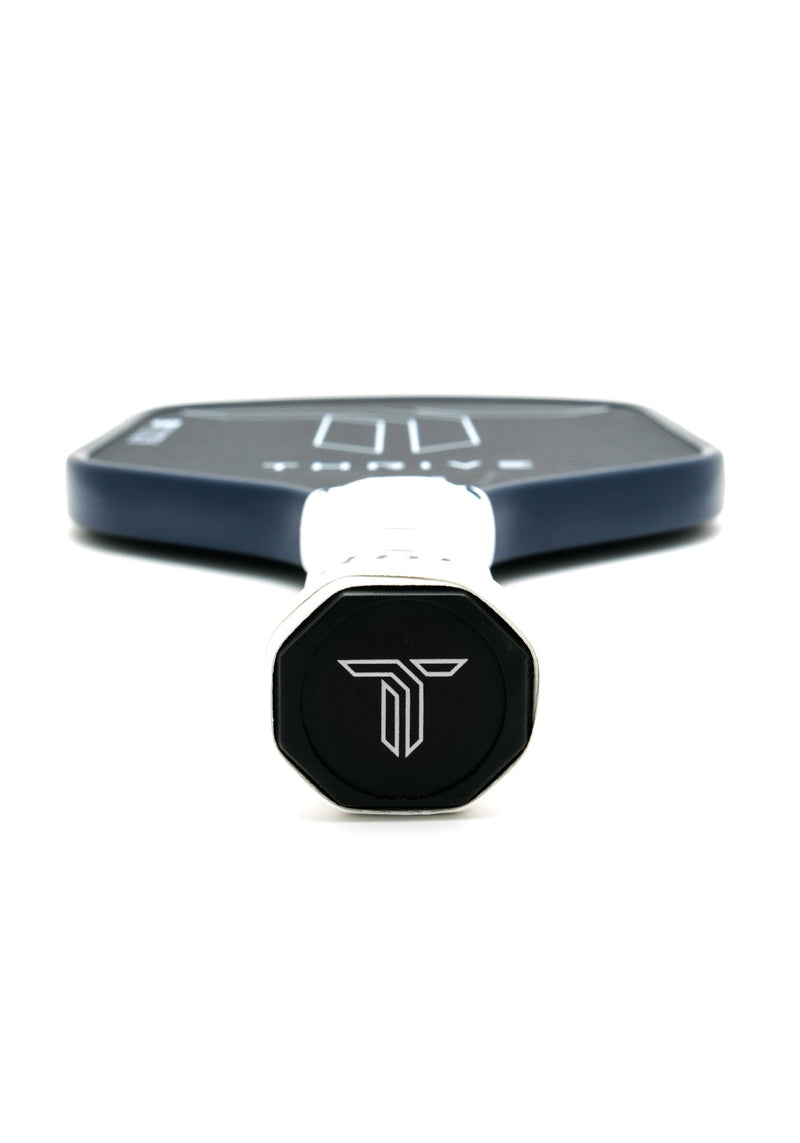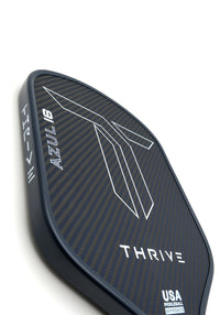 The AZUL is our first carbon kevlar paddle measuring in at 16 MM in a sleek hybrid shape. This paddle has exceptional pop and power while still having great control. With a large sweet spot (high twist weight), this paddle possesses the best of both worlds. Factor in the great spin the paddle produces; the AZUL is an exceptional all-around power paddle for any level of play. With a 5.5-inch handle, the AZUL is very good for players who like hitting a two handed backhand. Giving the player choices of different swing weights, the AZUL allows the player to customize their paddle to optimize performance. Using a special blend of carbon fiber and Kevlar, this paddle is constructed with the finest materials to perform on the court. Our peel ply technology uses a unique weave, giving you unparalleled spin and overall wear. This sleek designed paddle and graphics gives you the confidence to dominate on the court. Each paddle is hand weighed, giving you 5 important measurements to customize your paddle to your liking. When ordering, you have the option to choose from different swing weights. If you have a specific swing weight, we will try our best to send you what is requested. SPECIFICATION: 360 Unibody construction using unique carbon fused molding technology (thermoforming) Foam Injected Walls using a carbon seam to increase the sweet spot and feel Special blend of Carbon Fiber and Kevlar surface Peel Ply technology a unique and tested weave pattern for exceptional spin and wear. Swing Weight - 115-119 (your choice) Total Length - 16.3 Inches Width - 7.7 Inches Shape - Hybrid Grip Circumference - 4.125 Inches Grip Length - 5.5 Inches High Grade Polymer Honeycomb Core Core Thickness - 16mm Contoured Edge Guard USA Pickleball Approved Custom weight card Cleaning: We recommend using the Thrive Paddle Eraser
