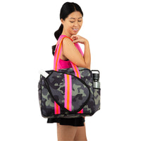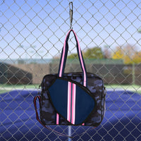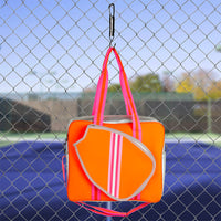 The Brooklyn Pickleball Bag is your Ultimate Companion for the Court! Elevate your pickleball game with the neoprene Brooklyn Pickleball Bag, a fusion of style and functionality designed to meet the needs of discerning athletes like you. Crafted to perfection, our pickleball bag boasts ample storage space and premium features to keep your gear organized and accessible wherever your game takes you. Features: SPACIOUS STORAGE: With multiple compartments and pockets, the Brooklyn Pickleball Bag offers ample room to store your paddles, balls, water bottles, and personal belongings with ease. 16” x 13.5” x 6”. Weight 2lbs. DURABLE CONSTRUCTION: Constructed from high-quality Neoprene, our pickleball bag ensures durability and longevity, standing up to the demands of your active lifestyle. Easy to clean with soft cloth, mild soap and water. STYLISH DESIGN: Choose from a variety of vibrant color options to match your personal style and stand out on the court. From bold patterns to classic hues, there's a Brooklyn Pickleball Bag for everyone. COMFORTABLE CARRYING: Equipped with padded shoulder straps and ergonomic handles, our bag ensures comfortable carrying, allowing you to transport your gear effortlessly from one match to the next. Includes fence hook to keep your bag off the ground. VERSATILE FUNCTIONALITY: Whether you're heading to practice sessions, tournaments, or casual games with friends, the Brooklyn Pickleball Bag is your go-to companion for all your pickleball adventures. Discover the Brooklyn Pickleball Bag in a range of exciting color options and elevate your game in style. Order yours today and experience the perfect blend of fashion and function on the court!