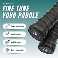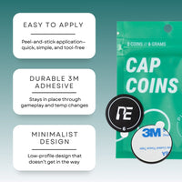 Cap Coins are precision-weighted coins that stick to the end cap of your pickleball paddle, lowering the balance point to reduce head heaviness. The result: better maneuverability, quicker hands, and faster flicks. It’s an easy-to-use way to fine-tune your paddle’s balance and performance—on its own or paired with Tungsten Tape. Improves Maneuverability Lowers the paddle’s balance point for quicker hands, faster flicks and better maneuverability at the net.Adds Power and Stability Adds mass without raising swingweight, giving you more plow-through without sacrificing control.Counterbalances Head Weight Offsets added weight at the paddle head, reducing swingweight effects and keeping your paddle feeling fast.Multiple Weight Options Choose from 6g, 9g, or 12g to match your needs—lighter for widebody, heavier for elongated.Minimalist Design Sleek, low-profile look that doesn’t get in the way or throw off your grip.Easy to Apply Peel-and-stick application—quick, simple, and mess-free.Durable Adhesive Engineered to stay firmly in place through intense gameplay and temperature changes.