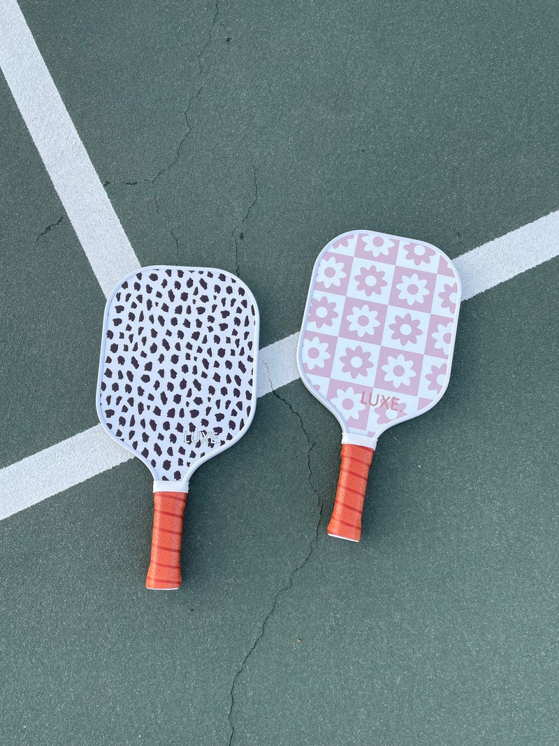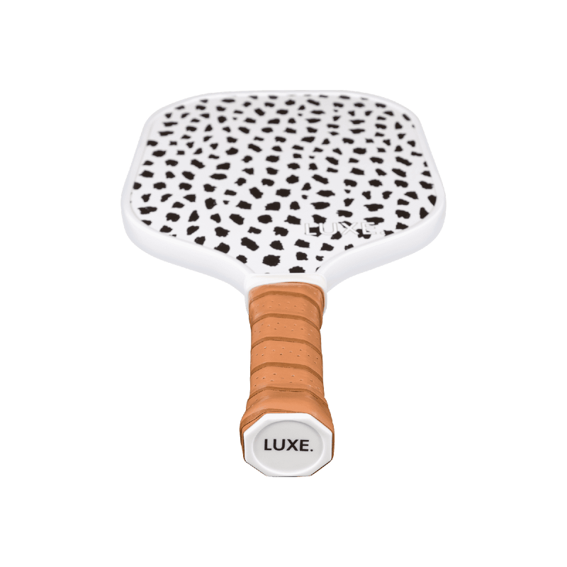 Cheetah print design on your paddle. Rumor has it that the ball speed coming off of this paddle is much faster as well.. Kiss my ace grip band included!