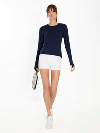 This timeless essential crew neck long sleeve top is a staple for every active wardrobe. True to size fit that is flattering. Inner neck taping for comfort around the back of the neck. Mesh inserts on overarms and sides for enhanced ventilation. Easy care fabric that dries fast and has quick recovery from wrinkles. Protects your body from the harmful UV rays without the harmful chemicals. Take control of every everything you do in this sporty top.
