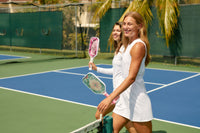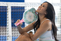 Pickleball for the fashionista! Inspired by sunny beach days and warm tropical nights the ROKNE Club Collection drops its dreamiest paddle collection yet. Experience power with a 13mm fiberglass design and major spin with the extra gritty face texture. All this paired with a fashionable design that whisks you aways to a pickleball paradise...every single day. PROGrit TEXTURE The PROGrit textured fiberglass surface creates extreme friction for an enhanced spin rate and exquisite shot-making. STABLE CORE The advanced polypropylene honeycomb core technology features a responsive sweet spot that provides a consistent feel and absorbs vibrations. ALL DAY COMFORT Play longer with the premium soft touch contoured cushion handle and breathable grip.