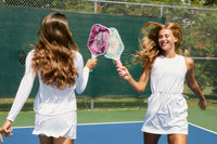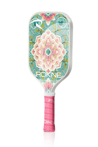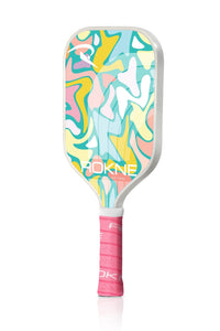 Pickleball for the fashionista! Inspired by sunny beach days and warm tropical nights the ROKNE Club Collection drops its dreamiest paddle collection yet. Experience power with a 13mm fiberglass design and major spin with the extra gritty face texture. All this paired with a fashionable design that whisks you aways to a pickleball paradise...every single day.