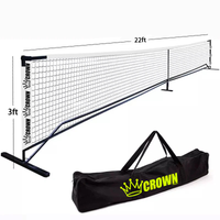 SET UP YOUR OWN PICKLEBALL COURT! The growth of Pickleball is outpacing facilities and equipment at a rate that is more than any other recreation sport today. According to USA Pickleball, only about 12,000 known locations exist in the United States ↗. That's why we're making it very easy to get your court started, whether you're training at home, setting up at your church, blowing off steam at work, or developing a program at your school. There are so many use cases for a portable, full-size pickleball net they're probably too many to list! Also, the lack of courts internationally is even more of an issue since existing facilities focus on existing racquet sports (tennis, squash, padel and badminton). But this shouldn't deter people—with varying levels of athleticism—to take part in one of the "funnest" activities around! The CROWN PICKLEBALL Full-Size Net is extremely easy to set up—and break down— ... and requires no tools. It's light-weight, high-quality aluminum frame makes it easy to move around and adjust as needed. Get up and running in a few minutes and have a great time with your crew! No set-up instructions needed; just pull pieces together and add net Must-have for home-training/games, ball machines and precision practice Fits into driveways, streets and cul-de-sacs Great for basketball gyms Fun at parties and tail-gates DIMENSIONS (FULLY SET UP) Width: 22' feet Height: 34” inches (legal Pickleball); 36" inches at the posts Feet Width: 37” (18.5” each side of net) NOTE: Due to the weight of this item, each net is subject to a $20 handling fee regardless of free shipping store policy.
