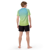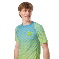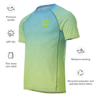 Ready to sweat?! This recycled rash guard wicks moisture, stretches comfortably, and looks amazing with its bold prints. Flat-lock seams add a stylish edge, making it ideal for long hours playing pickleball!• Soft, stretchy, comfortable, moisture-wicking fabric• Fabric is OEKO-TEX 100 standard & Global Recycled Standard (GRS) certified• 81% recycled polyester, 19% spandex (Lycra)• UPF 50+ protection• Premium quality NOTE: THIS IS A FITTED ITEM. This athletic contour runs small. So if you don't like it "tight-feeling", go a size bigger. We charge a $15 restocking fee for the wrong size, so use the chart accurately below This product is made-to-order and may take up to 10 days to deliver Item is may be subject to shipping fees regardless of store policy Size guide (see illustration) M 16 ⅜ 27 13 ¼ L 17 ⅞ 27 ½ 13 ¾ XL 19 ½ 28 ⅛ 14 ⅜ 2XL 21 28 ¾ 15