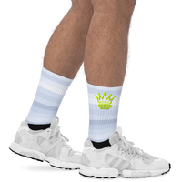 Serve style and comfort on and off the court with these performance crew socks. Designed for players and fans alike, they feature crisp, bold artwork that won’t fade, a ribbed leg that stays in place during quick pivots, and a plush cushioned bottom for all-day comfort—perfect for training, matches, travel, or everyday wear.