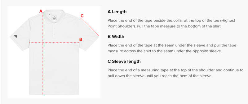 Stay cool and stylish with the adidas sport polo, made from 100% recycled polyester wicking piqué. The lightweight and premium fabric features a hydrophilic finish and an athletic fit. Great for outdoor activities or casual wear alike.• Relaxed fit• Hydrophilic finish• Rib-knit collar with three-button placket• Embroidered Crown & Adidas logos Size guide (see illustration) A (inches) B (inches) C (inches) S 28 ¾ 40 1/6 9 ⅜ M 29 ½ 43 1/3 9 2/3 L 30 1/3 46 1/2 10 XL 31 1/9 49 3/5 10 ¼ 2XL 32 53 ½ 10 ⅝ 3XL 33 57 ½ 11 4XL 34 62 ¼ 11 2/9