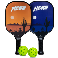 The DIADEM HERO STARTER KIT is the perfect bundle for the first time pickleball players. Included is everything you need but the court. Two Hero Paddles and 2 pickleball balls plus a mesh bag. Its wide face gives you the maximum surface area to contact the ball as you are learning. Utilizing the same HMT fiber as our Riptide line, the Hero is light weight and easy to swing. The thicker bumper prevents damage during your learning days on the court. At .55 in thick and 8mm honeycomb core, power will be easy to come by. The next pickleball champion starts here. Includes 2 paddles, 2 balls, and a mesh carry bag. USAPA APPROVED Specs: Hero Paddle Weight 7.6 oz Length 15.6 in Width 7.8 in Thickness 0.56 in Balance 225 mm Honeycomb Density 8mm PP Construction Glass Fiber Handle Length 5" Handle size 4" (0)