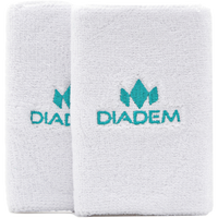 These double wide, 5" wristbands have the Diadem logo embroidered on one side - 2 per pack. Super absorbent, knitted wristbands are wide enough to soak up sweat in the hottest conditions. Available in 5 color variations to fit your mood. Construction: 80% cotton, 12% elastane, 8% polyester Colors: white, black, teal Size: 3" x 5"