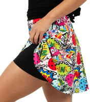 Introducing Queen of the Court Dink Dink Wham Pickleball and Tennis Skirt. Crafted from lightweight, breathable poly-spandex fabric, our designs feature a wide elastic waistband, moisture-wicking black shorts, and flat seams.