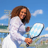 The Eclipse paddle is our newest model and the Argyle design looks sharp on the pickleball court. One side is full argyle and the either includes our signature stripe with the USA Pickleball approved text.