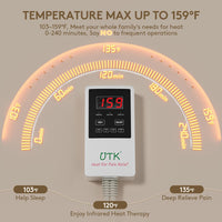 UTK Infrared Heating for Back Pain Harness the natural power of jade, which emits far-infrared rays (8 to 14 microns) when heated, thanks to its unique mineral composition and crystal structure. These rays penetrate deep into the skin, enhancing blood circulation and metabolism to alleviate back pain effectively. The gentle warmth also relaxes muscles, while jade's thermotherapy and soothing effects promote pain relief and overall wellness. Hot Stone Therapy Benefits Experience the earth's energy through hot stone therapy, which transfers heat deeply into the body. This deep heat conduction works locally and systemically, stimulating reflection points to relax muscle tissue, ease joint pain, and restore balance. What is Far Infrared (FIR) Therapy? The UTK 23.5" x 16" Heating Pad, crafted with natural jade, tourmaline stones, and built-in carbon fiber heating wire, emits far-infrared rays (FIR) when heated. These rays penetrate 4-6 inches into tissues, providing targeted pain relief and unparalleled therapeutic benefits.(This advanced technology sets us apart from standard heating pads.) Smart Controller Features Memory Function: Remembers your last settings for convenience. Auto-Off Timer: Automatically shuts off after 240 minutes for safety and energy savings. Simple Operation: Easy-to-use interface for effortless control. Customizable Heat: Adjustable temperature range from 103℉ to 159℉, tailored to your comfort needs. Reimagine heat therapy with UTK for effective, soothing, and deep pain relief. https://a.co/d/0whbh6O