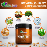 What’s Holding You Back? Is joint pain, muscle stiffness, or inflammation keeping you from living the active, fulfilling life you deserve? Perhaps stress is making it even harder to get through your day. These everyday struggles affect not just your physical health but your mental well-being too, limiting your ability to enjoy life’s precious moments—whether playing with your grandkids or staying on top of daily tasks. You don’t have to live like this. Why Royal Warrior Cream with Magnesium is the Solution Chronic pain and stress can rob you of your freedom, but you deserve better. Royal Warrior Cream with Magnesium is more than just a topical cream—it’s a powerful, all-natural solution crafted to relieve pain fast, soothe stress, and nourish your skin. This premium formula combines three potent ingredients—DMSO, Magnesium, and therapeutic-grade Frankincense—each chosen for their ability to work deeply and effectively. Whether you’re dealing with arthritis, muscle soreness, or chronic inflammation, this cream delivers targeted relief exactly where you need it. But it doesn’t stop there. We’ve enriched the cream with hyaluronic acid, aloe vera, and black seed oil—so while it’s relieving pain, it’s also hydrating, soothing, and improving your skin’s health. Unlike greasy alternatives, our cream absorbs quickly, leaving your skin feeling refreshed and never sticky or oily. With the calming power of magnesium and Frankincense, this cream goes beyond pain relief. It helps ease tension, quiet stress, and support a sense of calm that lasts all day. How It Works—And How You’ll Benefit Fast-Absorbing, Non-Greasy FormulaApply a small amount directly to the affected area. Royal Warrior Cream penetrates deeply to target inflammation and pain at the source. The non-greasy formula absorbs quickly, so you can return to your routine without mess or discomfort. Instant and Long-Lasting ReliefFeel noticeable relief in just minutes. Whether it’s joint pain, sore muscles, or stress-related tension, Royal Warrior Cream acts fast. You’ll experience hours of comfort without needing to reapply frequently. Stress-Relief at Your FingertipsCombining Magnesium and Frankincense oils helps calm your mind and balance your mood. Use it to not only relieve physical pain but also reduce mental stress and anxious tension. Take a moment to apply the cream, and feel the calm return. Perfect for On-the-Go ReliefIts compact size makes it easy to take with you—whether traveling, at the office, or running errands. You’ll never have to worry about being far from relief when pain or stress strikes. Experience Royal Warrior Cream Today Stop letting pain and stress control your life. With Royal Warrior Cream with Magnesium, you can get back to doing what you love without discomfort or anxiety holding you back. This fast-acting, all-natural solution works harmoniously with your body, delivering the relief you need—quickly, gently, and effectively. Your body deserves this. Your peace of mind deserves this.Try Royal Warrior Cream today and experience the difference it can make. You won’t look back. Order Now and Feel the Difference Fast, free shipping on orders $75+ 30-Day satisfaction guarantee Made with 100% sustainably sourced, cruelty-free ingredients Directions Clean the area you'd like to apply Royal Warrior cream with soap and water. Apply the cream daily and as needed for pain. Wash hands & application site before use. For topical use only. Slight skin irritation may occur, but is temporary and lessens as your skin gets used to the cream. If irritation persists, rinse with warm water. Ingredients Aloe Vera Juice, DMSO (99.995% Pharma Grade), Emulsifying Wax, Essential Oils (Frankincense, Copaiba), Shea Butter, Cocoa Butter, Arrowroot, Hyaluronic Acid, Hydrated Silica, MSM, Black Seed Oil, Coconut Oil, Magnesium Chloride, Vitamin B3, Jojoba Oil, Castor Oil, Boswellia Gum Extract, Vitamin D3, Vitamin E, Olive Leaf Extract, Zinc Oxide Essential Oil Benefits Infused with Pure Therapeutic Grade Essential Oils Frankincense: Helps relieve stress, boost the immune system, reduce pain and inflammation, supports healthy cellular function, and helps balance mood. Disclaimers *The statements made regarding these products have not been evaluated by the Food and Drug Administration. The efficacy of these products has not been confirmed by FDA-approved research. These products are not intended to diagnose, treat, cure or prevent any disease. All information presented here is not meant as a substitute for or alternative to information from health care practitioners. Please consult your health care professional about potential interactions or other possible complications before using any product. The Federal Food, Drug and Cosmetic Act requires this notice. The individuals providing testimonials on this site experienced extraordinary results while using these products. As individuals differ, so will results. They were not paid for their testimonies.