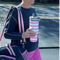 Our 30 oz water bottle features built-in flip up straw and handle on top for effortless drinking and carrying. Double-walled vacuum sealed design keeps drinks cold/hot for hours while you play!
