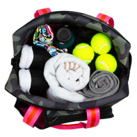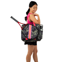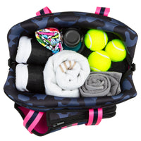 Elevate your game with style and functionality with our Hampton Tennis Bag. The Hampton Tennis Bag Collection, where sophistication meets sport. Designed to be your trusted companion on and off the court, the neoprene Hampton Tennis Bag is the epitome of elegance and practicality. SPACIOUS COMPARTMENTS: Keep your essentials organized with multiple compartments designed to accommodate your racquets, apparel, accessories, and personal items effortlessly. Fits one oversized or two standard size rackets. 16” x 14” x 6”. PREMIUM MATERIALS: Meticulously crafted from high-quality neoprene, our tennis bags ensure durability and longevity, withstanding the rigors of your active lifestyle. SLEEK DESIGN: Each bag in the Hampton Collection boasts a sleek and contemporary design, making a statement both on and off the court. Whether you're heading to practice or a tournament, you'll arrive in style. COMFORTABLE CARRYING: With padded shoulder straps and ergonomic handles, our bags offer supreme comfort during transportation, allowing you to focus on your game without any distractions. VERSATILE STYLES: Choose from our exquisite designs, each inspired by the latest trends and tailored to suit your individual taste. From classic neutrals to bold patterns, there's a Hampton Tennis Bag to complement every style. Elevate your tennis experience with the Hampton Tennis Bag Collection. Explore the full range and make a statement both on and off the court. Order yours today!