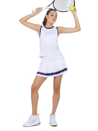 An update to our popular Hazel Tank. The new relaxed fit Retro inspired Harper Tank with linear contrast accents and color blocks is sure to stand out on or off the court. It features a crew neck, 4-way stretch, UPF sun protection and moisture wicking comfort with antimicrobial finish. Relaxed FitFull coverageUPF 30-50+ rating: Varies between colors. Protects your skin from harmful ultraviolet rays.Moisture-wicking and quick-drying Pulls moisture away from the body and dries quickly to keep you cool and comfortable.Anti MicrobialMachine washable: Easy care for everyday wear. Four-way stretchCrafted from eco-friendly 88% recycled polyester and 12% spandex fabric.