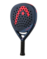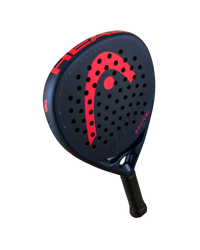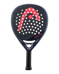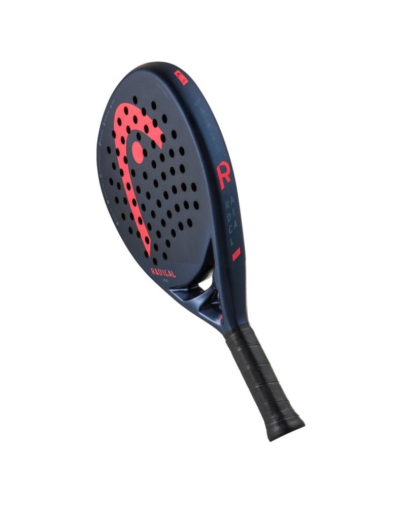 Head Radical Pro racket with soft plug technology at the base of the handle. Head Radical Pro 2024 racket made with a new teardrop-shaped mold and intended for advanced and professional players. The 3K carbon hitting surface improves control and versatility, while its lighter weight and balance improve handling. To offer superior power and an exceptional impact sensation, the racket has innovative Auxetic technology, while the soft plug technology at the base of the handle provides a greater sensation of softness in the game and reduces vibrations. The exclusive navy blue design features visible carbon elements that contribute to its premium look.