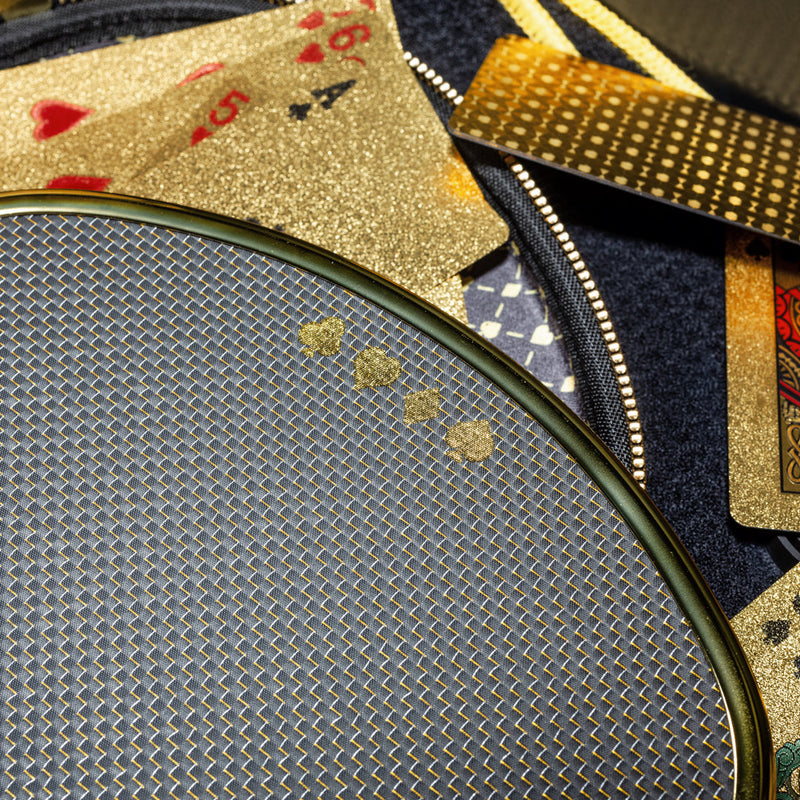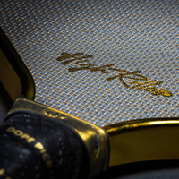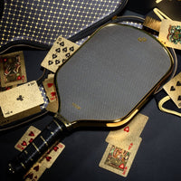 The Chrome Gold Pickleball Paddle Featured in the 2025 Michelob Ultra Super Bowl “Ultra Hustle” Ad Meet the paddle that lit up Super Bowl LIX and redefined what it means to play in style. The High Roller Pickleball Paddle isn’t just a piece of equipment—it’s a status symbol of dominance, precision, and disruptive luxury. Surface Material: 3K Gold Titanium Carbon Fiber Weave Unmatched Aesthetics: Featuring a radiant chrome gold 3K carbon weave, this paddle demands attention before the first serve is even hit. Pro-Level Control: Engineered to deliver consistent responsiveness, allowing for sharper placement and smoother touch across every shot. Surface Texture: Charged Carbon Fiber Power Meets Finesse: Whether you're driving from the baseline or dinking at the kitchen, this surface gives you the gritty feel you need—without sacrificing elegance. All-Court Versatility: Designed to adapt to your playstyle, not the other way around. Edge Guard: Chrome Gold Metallic Chrome Innovation: The first-ever metallic chrome electroplated edge guard in pickleball. We believe edge guards have no functional relevance to helping a paddle beyond aesthetics—explaining why edgeless paddles have become popular for players seeking a sleeker, uninterrupted surface—we decided to elevate the aesthetic game entirely. This chrome edge turns protection into pure prestige, making a bold statement that enhances your on-court vibe without any practical impact on performance. Weight & Shape: Hybrid 8 oz Designed for explosive drives, soft resets, and effortless hand speed—without the bulk. Strike hard and react faster with a paddle that feels as good as it looks. Core Thickness: 16mm Polypropylene Thermoformed Comfort + Control: The 16mm thick core delivers a plush feel on contact, reducing vibration while enhancing touch for drops, rolls, and resets. Handle Length: 5.5 Inches Perfect for both one-handed and two-handed play, the extended 5.5" handle offers ergonomic comfort and a balanced feel that minimizes fatigue over long sessions. Verification Technology: Built-In Double NFC Chip Tap to Verify: The High Roller comes embedded with NFC technology, allowing verification of authenticity via smartphone. While high-end paddles range from $200–$280, none combine this level of design, innovation, and cultural impact. This isn’t just gear—it’s a movement. And its moment in the Super Bowl spotlight only cemented its legacy. Join the Pickleball Elite Owning a High Roller means joining a different class of competitor—one that values innovation, swagger, and substance. You don’t follow the trends. You set them. Let others play by the book. You? You’re here to rewrite it.