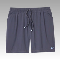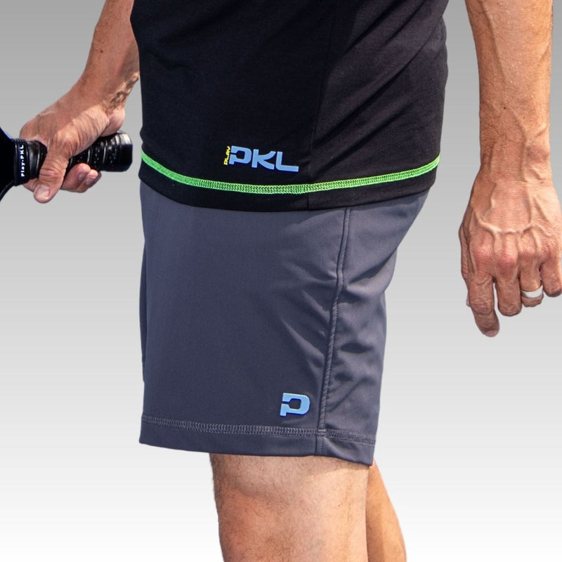 The Playly Kelter Short was designed for performance and comfort. Made from our signature SofKnit™ fabric, the Kelter Short is soft and stretchy with an elastic waistband. The side seam pockets ensure secure pickleball storage while keeping them out of your way during play. A low profile rear zippered pocket keeps your keys or phone firmly in place while you set up that kill shot. 7" Inseam Length Made from 80% Nylon and 20% Elastane SofKnit is moisture wicking, quick drying, and UPF 50+ Logo drawstring waist cord Sizes: S, M, L and XL Colors: Black, Slate Our revised take on the Kelter Short - the Kelter Short 2.0 - is available now for pre-order in Navy and Slate colors. Sending a gift? Click here to add a jute drawstring gift bag to your purchase!