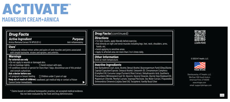 - KT Health Activate™: Prepare your muscles for action with our Activate™ variant, made with Arnica Montana. This activating magnesium cream helps loosen muscles and reduce stiffness, giving you the flexibility and mobility needed to perform at your best. Ideal for athletes, weightlifters, and runners, KT Health Activate™ ensures your body is primed for peak performance.