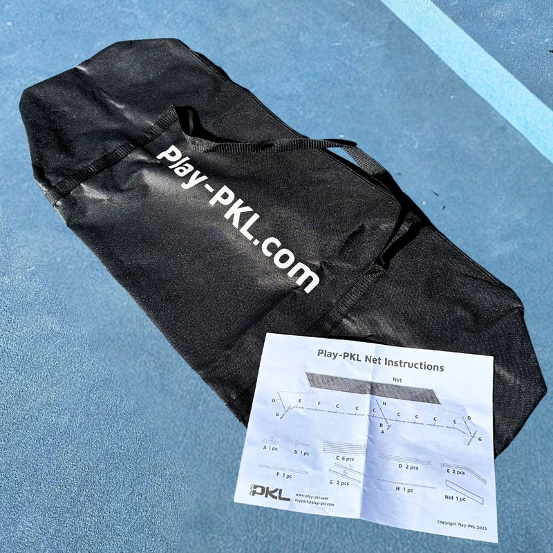The Playly Logo Portable Pickleball Net allows you to play pickleball almost anywhere. Just chalk out the lines, assemble the net, and start playing! Includes simple assembly instructions and a water-resistant handled carrying bag for easy transport Velcro-tension system enables users to adjust the net tautness Piping is made from steel tubes with PVC coating for weather resistance Features flat center support, strong black nylon netting and durable banded edges on the top and sides Net weight: 21.6 lbs USA Pickleball provides a comprehensive guide for building your temporary court. Contact Us about building a temporary pickleball court at your workplace!