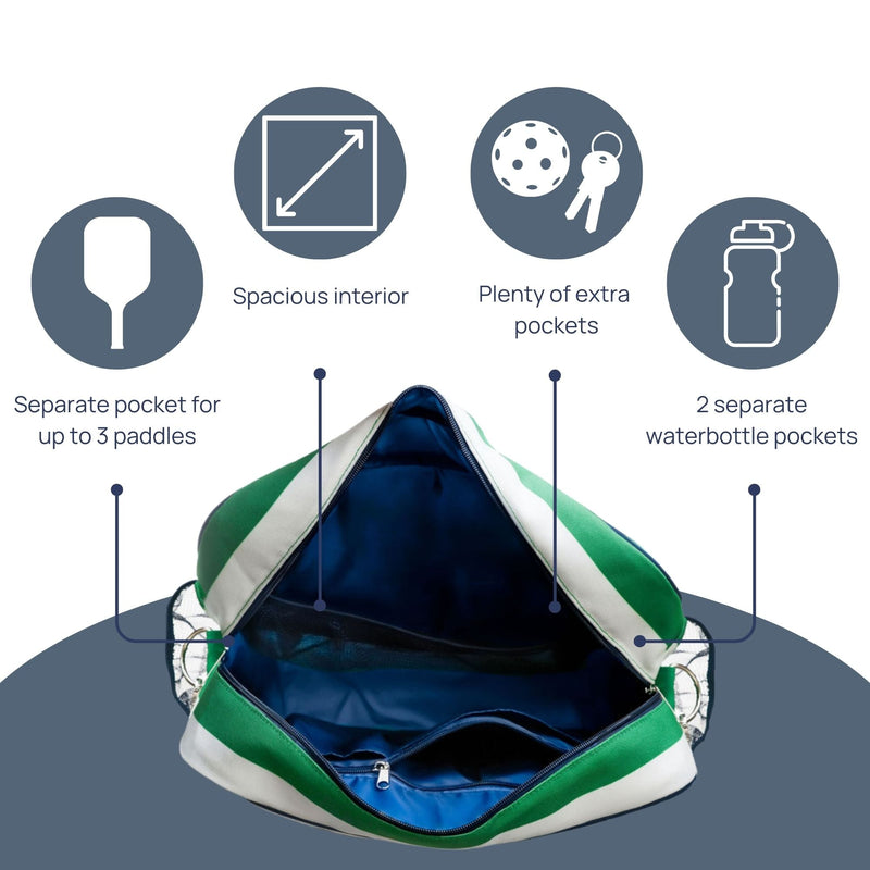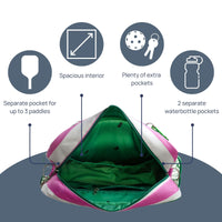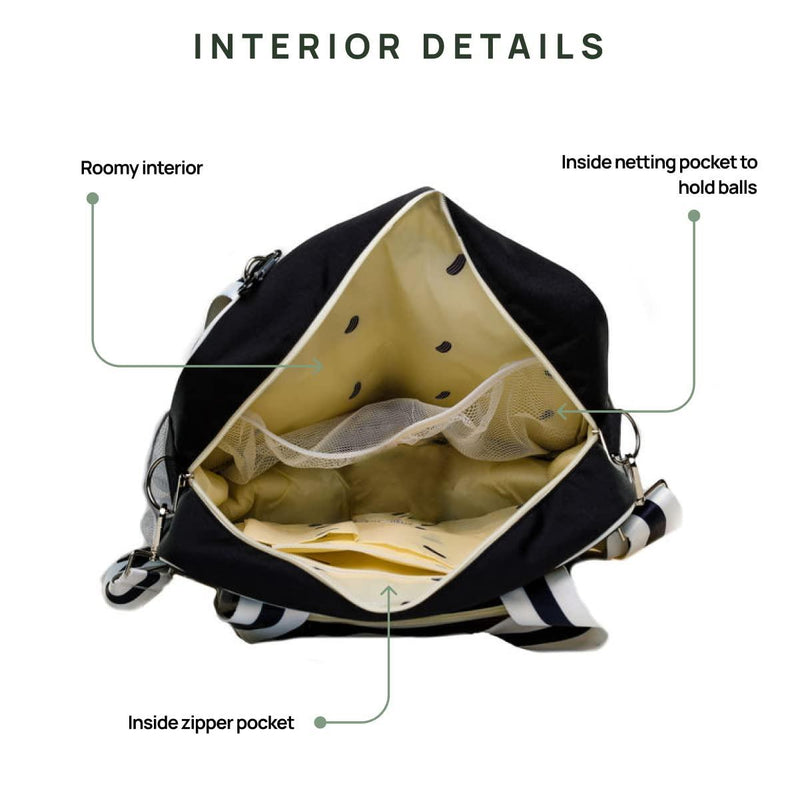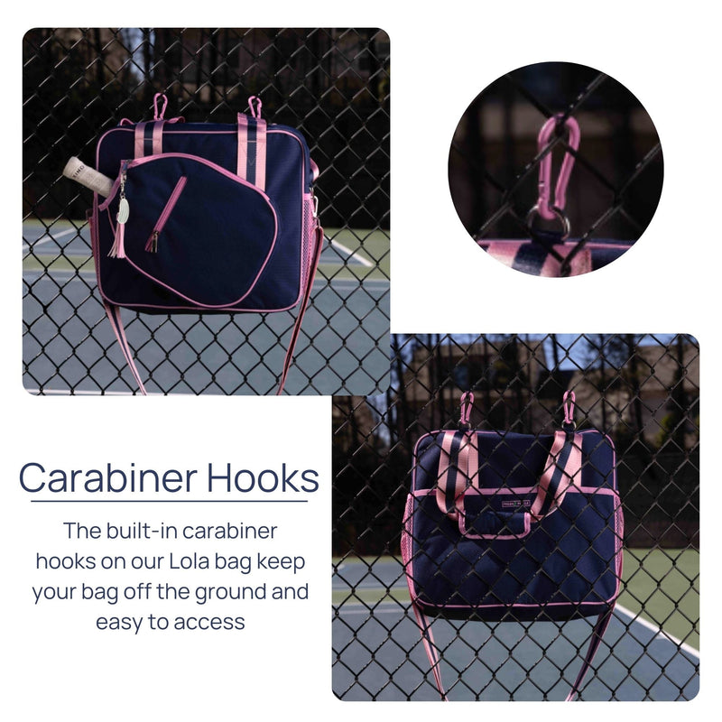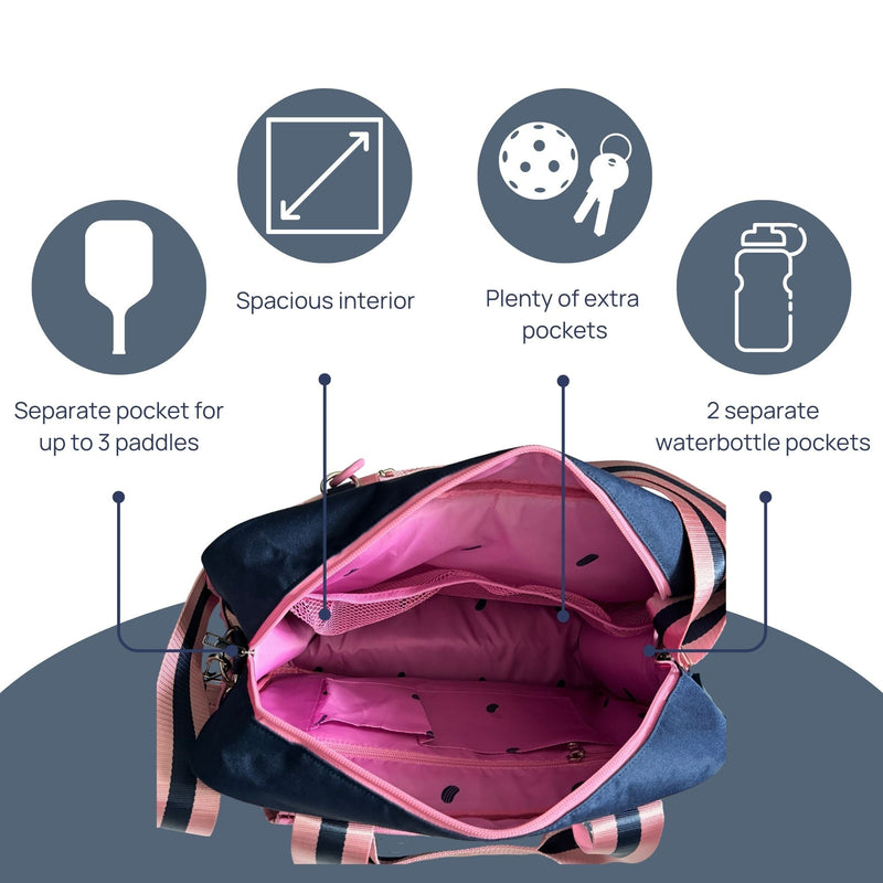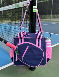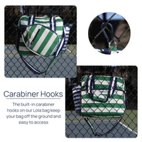 Our Lola tote bag is the perfect pickleball bag for your game! Designed by a player, this bag has all of the features that you need to keep you organized and stylish on the court.
