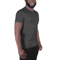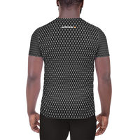 Moisture management t-shirt with mesh pique fabric to keep you dry and comfortable.• 92% polyester, 8% spandex• Soft four-way stretch sports mesh fabric • Comfortable fit• Overlock and coverstitch• UPF 50+ protection NOTE: THIS IS A FITTED ITEM. This athletic contour runs small. So if you don't like it "tight-feeling", go a size bigger. We charge a $15 restocking fee for the wrong size, so use the chart accurately below This product is made-to-order and may take up to 10 days to deliver Item is may be subject to shipping fees regardless of store policy Size guide (see illustration) Size Label A B C XS 18 ⅛ 26 ¾ 7 ½ S 18 ⅞ 27 7 ⅝ M 19 ¾ 27 ⅛ 7 ⅞ L 21 ¼ 27 ½ 8 ¼ XL 22 ⅞ 28 8 ⅝ 2XL 24 ⅜ 28 ⅜ 9 3XL 26 28 ¾ 9 ½