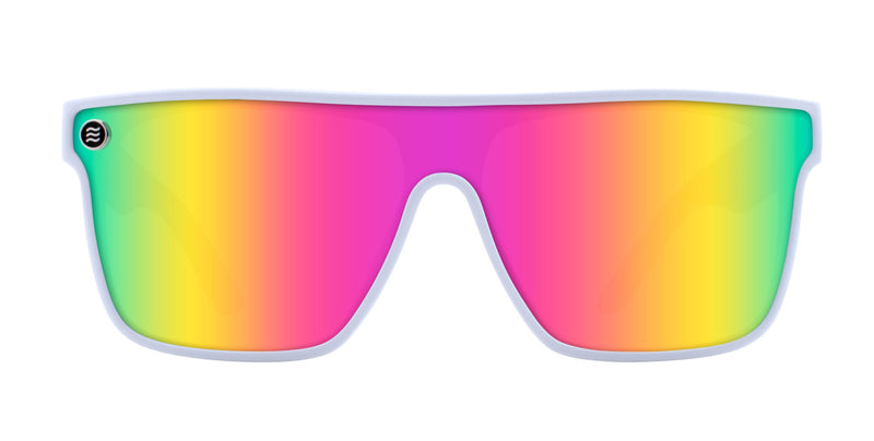 Rocking pristine white frames and chill multi colored lenses, these shades are effortlessly cool. Muse is where classic vibes meet laid-back style. Perfect for those lazy sunny days or spontaneous road trips, they're not just sunglasses, they're a mood. Slide on a pair and let the world see your vibe. Chill out and stand out with Muse. FEATURES INCLUDE Frame size: Large Finish: Gloss Stainless steel signature lens logo Frame color: White Lens color: Pink/Yellow Interior lens tint: Blue/Gray Light Transmission: 13.70% Stainless steel 5-barrel hinges Upgraded TR90 frames Polarized UV400 protection Premium oleophobic coating Anti-saltwater FDA approved, impact-resistant lens Protective pouch included