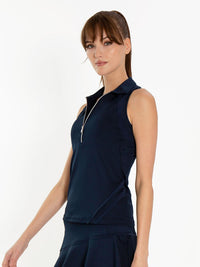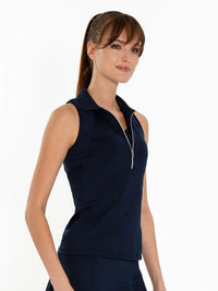 Timeless and elegant. This classic sleeveless polo is one of our best sellers. It is made from moisture wicking fabric and features a soft nylon zip entry in shiny silver, self fabric collar and sheer mesh inserts around the shoulders and back for added ventilation. Invisibly built in darts around the front chest and armhole to give you flattering fit and maximum comfort. You'll love this sophisticated, match-ready look from our essential collection. Semi-fittedFour-way stretchMoisture wicking and quick dryRecycled polyester 88%, Spandex 12%Mesh Inserts Back & ShouldersEasy careMachine washable