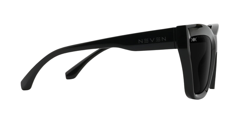 In an exclusive collaboration with Chelsey Mac Johnson, Neven Eyewear’s Coven Collection redefines statement eyewear with sharp cat-eye frames and a bold, unapologetic aesthetic. Designed for those drawn to a darker, edgier vibe, each pair merges fashion and function with polarized lenses, UV protection, and a subtle moon-phase logo etched on the lenses for a hint of cosmic energy. All black, all day (not just on Wednesdays). Nocturnal cat-eye shades feature a sleek, glossy frame that's bold and classy. No color needed, just that bold effortless edge. Keep it mysterious, day or night. FEATURES INCLUDE Frame size: Medium Finish: Gloss Custom etched Moon Phase lens logo Frame color: Black Lens color: Black Interior lens tint: Black Light Transmission: 5.42% Stainless steel 5-barrel hinges Upgraded TR90 frames Polarized UV400 protection Premium oleophobic coating Anti-saltwater FDA approved, impact-resistant lens Protective pouch included